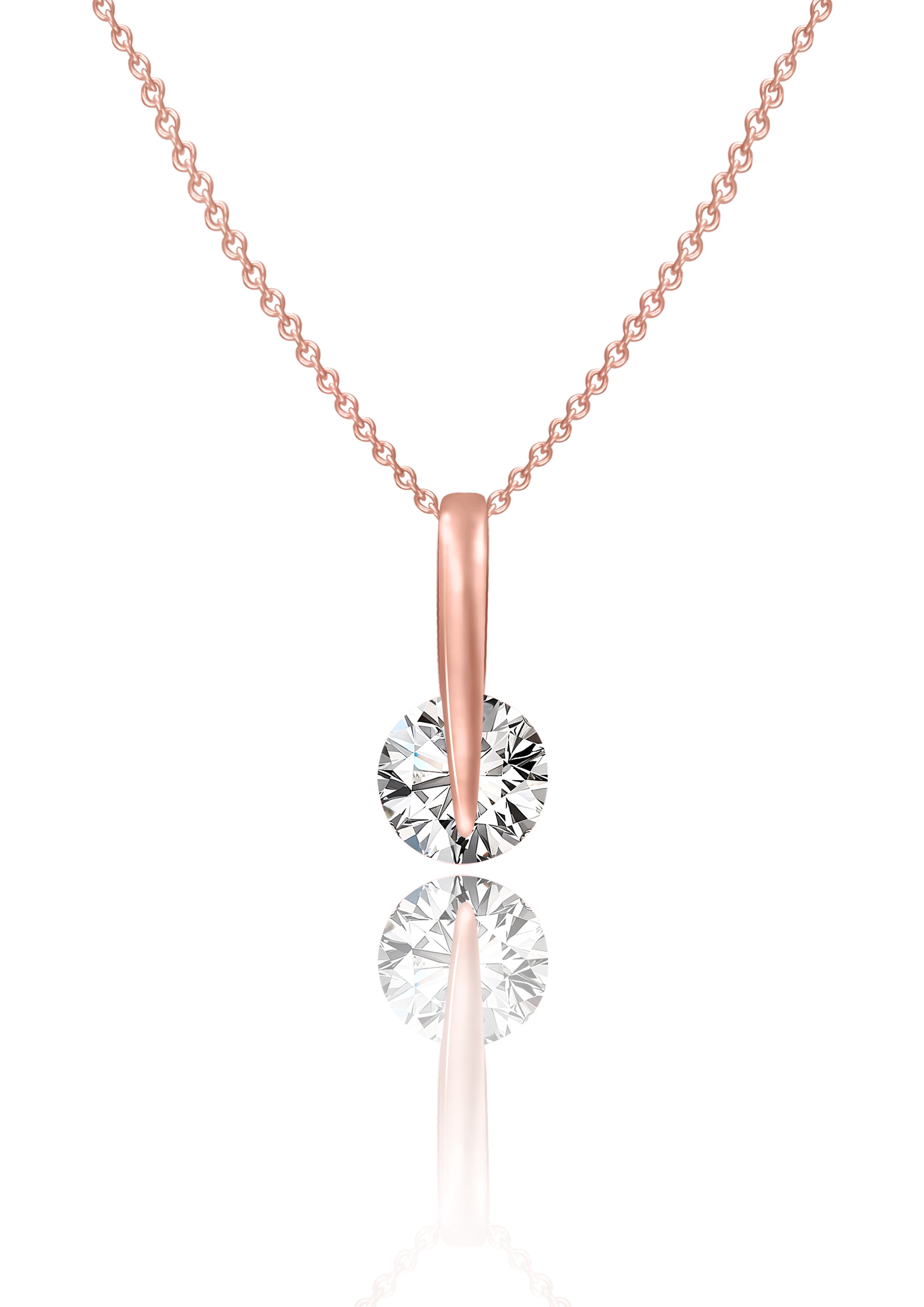 The Rose Gold Modern Solitaire pendant is a captivating departure from traditional designs, redefining elegance with a unique and modern setting that allows the diamond to speak volumes.