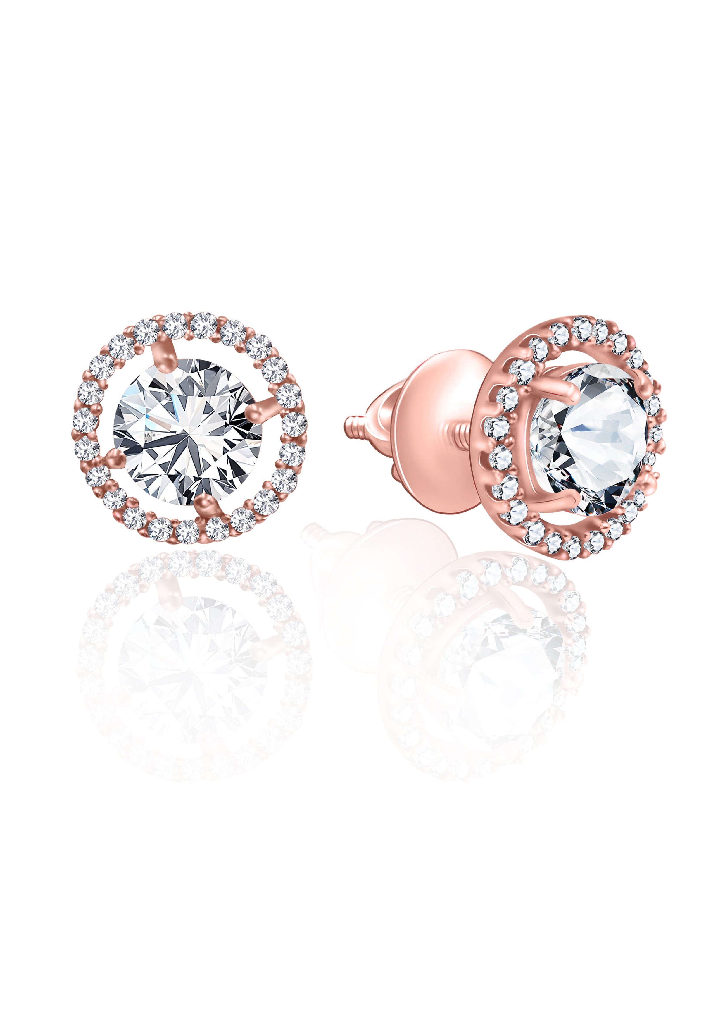 The rose gold Shining Halo Earrings embody a perfect union of modern aesthetics and timeless charm. The sleek and minimalist sterling rose gold setting provides a versatile backdrop, ensuring these earrings effortlessly complement any attire – from casual ensembles to formal attire.