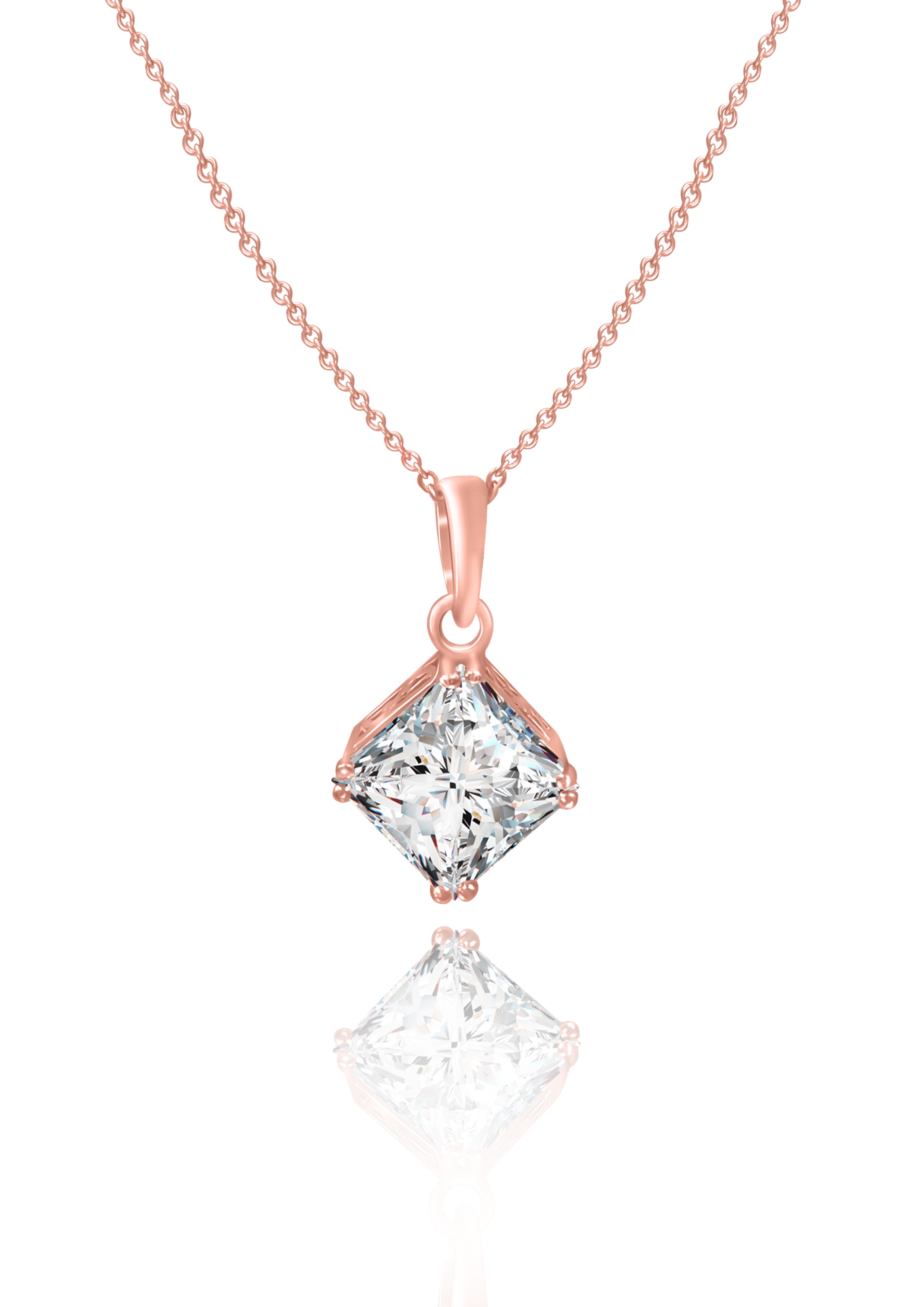 The Rose Gold Square Pendant brings out the beauty in symmetry. For those who appreciate perfection, symmetrical jewelry is nothing short of a dream. Yet, for us, mere symmetry is not sufficient—there must be an infusion of glamour!