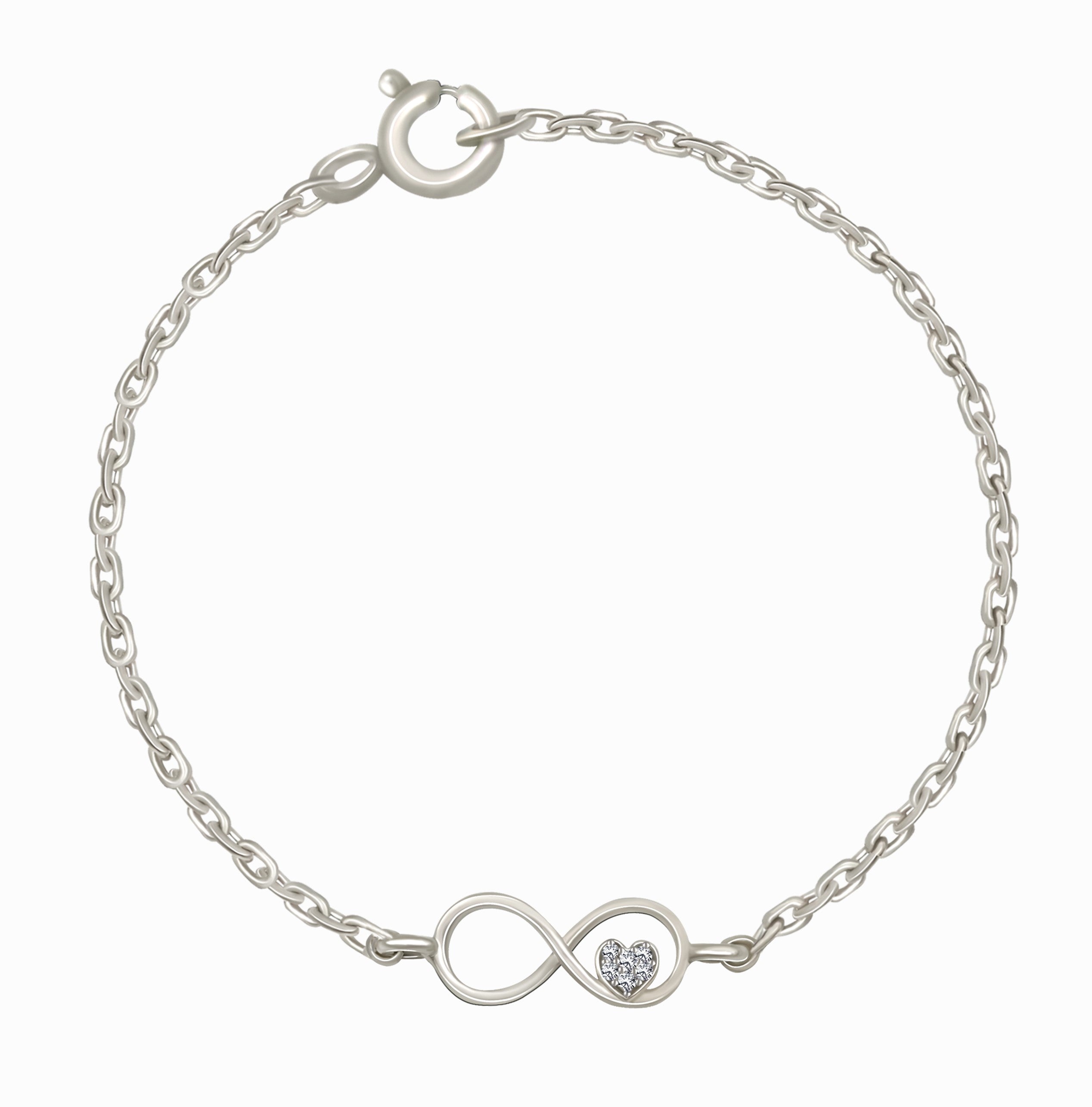Experience the magic of eternal love with our Silver Infinity Heart Chain Bracelet. Order yours today and let your love shine forever.