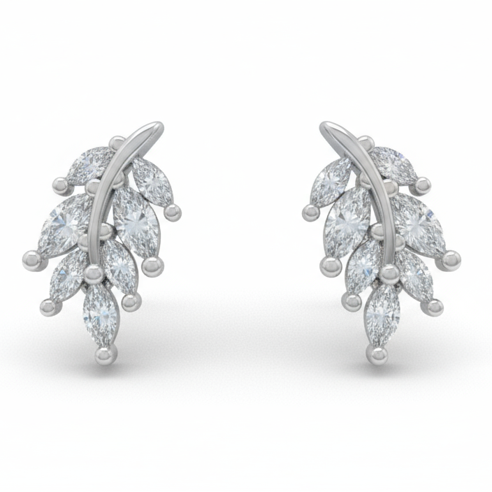 Design: Elegant leaf pattern studs with cascading cubic zirconia accents